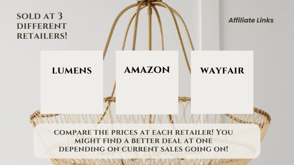 I have linked three retailers that sell this chandelier: Amazon, Lumens, and Wayfair! Make sure to compare the prices between the three (take note of shipping costs) to make sure you get the best deal! You never know if one retailer is having a current sale or not!